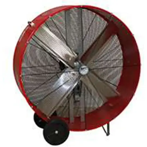The MaxxAir 42 in two-speed portable drum fan is a big air mover. This fan is ideal for moving large volumes of hot air quickly and efficiently to keep people and machines cooled off. The drum fan is useful in indoors, on the factory floor, in a warehouse or in a barn with livestock where high-velocity air movement is needed. This fan is belt-driven for quieter operation and longevity and has a rugged, 22 ga steel powder-coated housing for durability. The grille is OSHA compliant, rust-resistant and powder-coated.