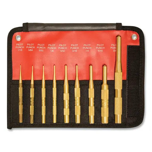 Brass Pilot Punch Kit Punch Set: 9 Pc, 0.0625 to 0.375" Round Shank, Comes in Pouch