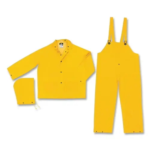 MCR Safety 2303M 2303 Classic Series 3-Pc Yellow Rain Suit, Jacket w/Detachable Hood, Bib Style Pants, 0.32 mm, PVC/Polyester, Medium