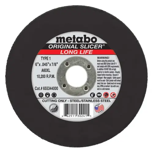 Metabo 55344 Original Slicer Cutting Wheel, 6 in dia, 0.045 in Thick, 7/8 in Arbor, 36 Grit , AO Black