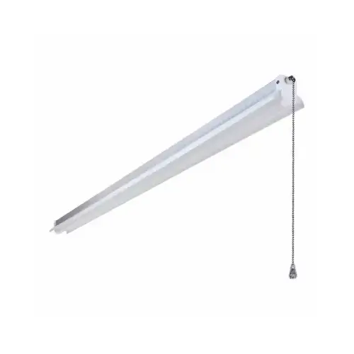 The Metalux AP shop light is an extruded aluminum integrated LED fixture that comes with a 120 V grounded cord and plug. The APSHP replaces two or three lamp fluorescent shop lights or strips and is well suited for work benches, counters, work-shops, studios and storage areas where general task lighting is needed. The APSHP includes mounting hardware and on/off pull chain for easy installation and operation. The APSHP is UL-listed with LEDs rated to 50,000 hrs and backed by a 3 years warranty.