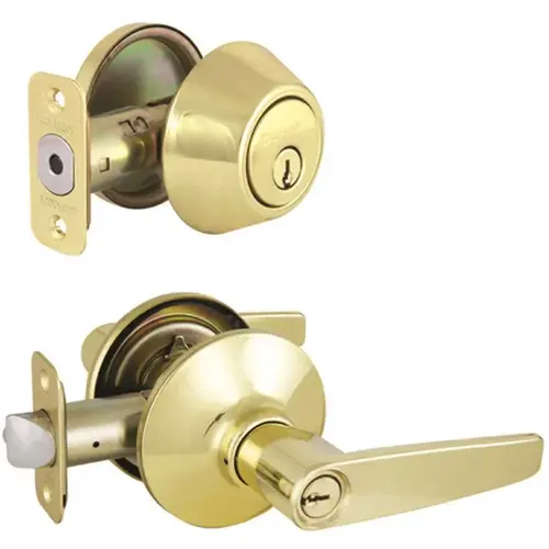 Olympic Polished Brass Entry Lever and Single Cylinder Deadbolt Combo Pack
