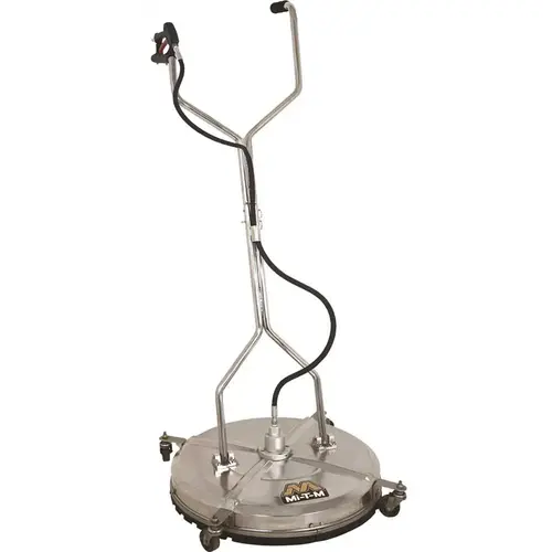 Mi-T-M 24" Stainless Steel Rotary Surface Cleaner. Two Nozzle Arm Spray Bar. Shut-Off Ball Valve. Professional Grade High-Pressure Trigger Gun. Cleans Large Surface Areas Quicker Than Traditional Nozzles. Use With Most Gas Pressure Washers Up To 4,200 Psi Rated, Hot And Cold Water. Mfg #AW-7020-8006