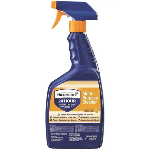 Microban 24 All Purpose Cleaner is an EPA approved 1-step cleaner, disinfectant and sanitizer that provides 24-hour protection against bacterial growth on hard surfaces. Microban 24 also provides antifungal protection for up to 7-days on hard surfaces and 28-days on fabric. Microban 24 does not contain bleach, phosphates or nonylphenol ethoxylates and complies with VOC regulations in all 50 states.