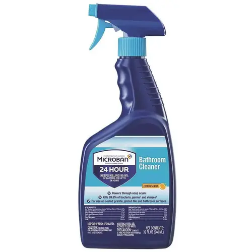 Microban 24 Bathroom Cleaner is an EPA approved 1-step cleaner, disinfectant and sanitizer that provides 24-hour protection against bacterial growth on hard surfaces while providing excellent soap scum removal performance. Microban 24 also provides antifungal protection for up to 7-days on hard surfaces and 28-days on fabric. Microban 24 does not contain bleach, phosphates or nonylphenol ethoxylates and complies with VOC regulations in all 50 states.