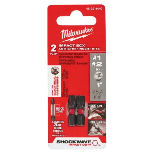 Milwaukee 48-32-4440 SHOCKWAVE Insert Bit Set, ECX Drive, 1/4 in Shank, Hex Shank, 1 in L, Steel Pair Black Oxide