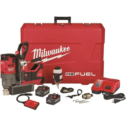 • Includes: one M18 1-1/2 in. lineman magnetic drill kit (2788-22), two M18 REDLITHIUM HIGH OUTPUT XC8.0 battery (48-11-1880) one AC/DC vehicle charger, one 3/4 in. Weldon to 1/2 in. chuck adapter, 1 chuck key, 1 magnetic lubrication tank, 1 safety strap, two 1 in. retractable pilot pin, 1 carrying case