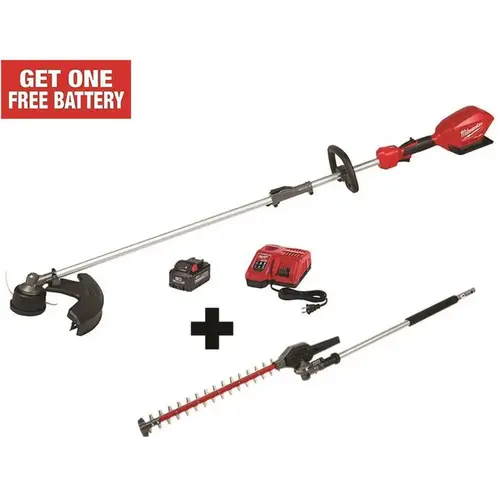 The Milwaukee M18 FUEL String Trimmer Kit with QUIK-LOK, designed for landscape maintenance professionals, provides users with the power to clear thick brush, reaches full throttle in under 1-second and features a balanced design which increases user control. The cordless string trimmer is made up of 2 components the M18 FUEL Power Head with QUIK-LOK and QUIK-LOK String Trimmer Attachment. This M18 FUEL Power Head, part of the QUIK-LOK Attachment System, is compatible with multiple attachments such as an Edger, Articulating Hedge Trimmer and Pole Saw attachment. This gives users the ability to quickly swap out attachments on a single Power Head, delivering ultimate versatility and a lower cost of ownership. The POWERSTATE Brushless Motor delivers up to 6,200 RPM with up to a 16 cutting swath and gives you the power to maintain speed in demanding applications without bogging down. The motor is positioned in the rear of the trimmer to provide the best combination of power, balance and maneuverability. REDLINK PLUS intelligence ensures maximum performance while protecting from overload, overheating and over discharge.