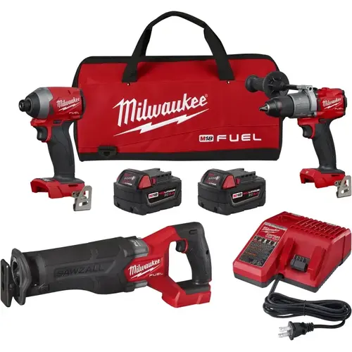 Our M18 FUEL 3-tool combo kit delivers you the most advanced 18 V cordless cutting, drilling and fastening technology in the industry. This kit features three M18 FUEL 18 V lithium-ion brushless cordless tools including a 1/2 in hammer drill, 1/4 in impact driver and SAWZALL reciprocating saw. M18 FUEL is fully compatible with the MILWAUKEE M18 cordless system, featuring over 200 solutions. M18 FUEL provides you with the most advanced cordless technology in the industry, a POWERSTATE brushless motor, REDLINK PLUS Intelligence and REDLITHIUM battery technology resulting in longer motor life, longer run time and more power.