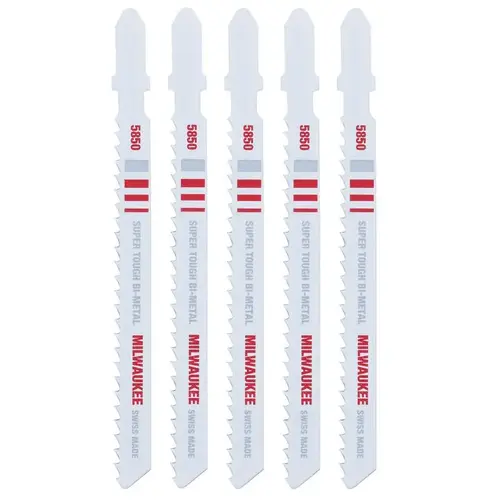Get professional-grade performance and longer blade life with the Milwaukee 4 in 8 TPI bi-metal jig saw blade- T-Shank (5-Pack). These heavy-duty blades lasts longer than high-speed steel or carbon blades, combining the strength to cut metal with the durability to withstand impacts without breaking. With Milwaukee attention to blade material, tooth shape and sharpness, the jig saw blades produce clean, fast cuts in aluminum and non-ferrous materials. The T-Shank allows for quick installation. Use with Milwaukee jig saw models 6266-6, 6276-6, 6267-20, 6267-21 and other popular brands.