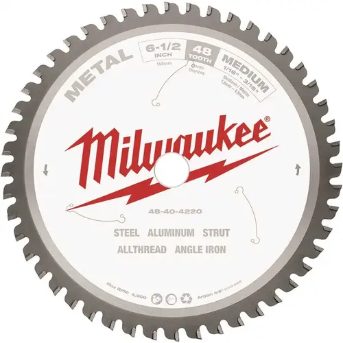 Milwaukee metal cutting circular saw blades were specifically designed to exceed the expectations of contractors for blade life, cut quality and speed in the most demanding metal cutting applications without a lubricant. A hand tensioned, hardened alloy steel body extends blade life and delivers the highest quality cuts available. Carbide tipped teeth with alternate top bevel grind shear through metal leaving burr-free, cool to touch cuts.