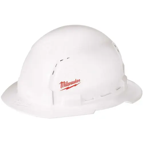The Milwaukee Full Brim Vented Hard Hats are designed to Adapt For Your Jobsite. The hard hat features a BOLT Reversible Headlamp Mount that works with most headlamps for easy, secure attachment. 4 BOLT accessory slots and 2 universal accessory slots allow users to easily integrate additional personal protection equipment and accessories onto the helmet. For improved comfort, all Milwaukee hard hats feature a ratcheting suspension that users can quickly adjust. A BOLT Marker Clip allows users to easily access to pens and markers. A BOLT Marker Clip allows users to easily access to pens and markers. A sweatband is also included and is moisture wicking to provide users with additional comfort. These Milwaukee construction hard hats are ANSI/CSA approved and can be customized with the addition of a small logo.