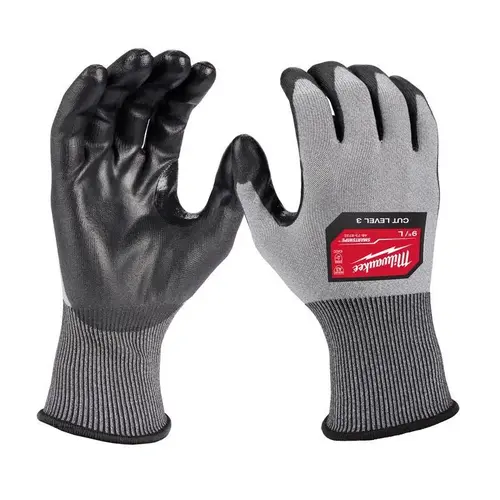 The MILWAUKEE High-Dexterity Cut Level 3 Polyurethane Dipped Gloves allow our users to maintain high dexterity while also providing a better fit. These cut-resistant gloves are made of an 18 gauge knit for total mobility. The gloves also have a reinforced nitrile coating between the thumb and index finger for enhanced durability in high wear points. The polyurethane dip makes the glove feel lighter and more breathable while working. MILWAUKEE SMARTSWIPE fingertips provide you with full access to your touchscreen devices without removing the gloves. MILWAUKEE High-Dexterity Gloves feature a color-coded wrist band for easy cut level identification.