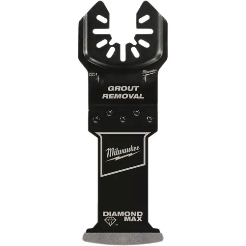 The MILWAUKEE OPEN-LOK DIAMOND MAX Diamond Grit Grout Removal Oscillating Multi-Tool Plunge Blades deliver 15X longer life than standard carbide grit blades when removing grout. DIAMOND MAX Diamond Grit offers best-in-class performance with higher-grade diamonds for maximum heat and fracture resistance. The unique bonding process provides improved diamond retention. Designed with a smaller curved edge and extended length, the blade shape allows for more control and faster grout removal. These blades feature a reinforced Universal Fit OPEN-LOK anchor for better strength & control and allow for quick blade changes across 100+ multi-tools. Not compatible with Starlock tools.