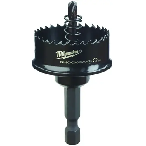 Designed with a robust 1/4 in quick-change hex shank, Milwaukee SHOCKWAVE Impact Duty thin wall hole saws give professionals a hole making solution to use with impact drivers. Utilizing a thin wall, 8 TPI design, thin wall hole saws deliver a burr-free cut up to 40% faster than standard bi-metal hole saws. The included ejection spring removes the frustration of manually removing slugs by automatically ejecting the material. A stop shoulder design prevents over drilling into material and potentially damaging inner components of electrical and junction boxes. Choose thin wall hole saws for use in plastics and thin gauge metals up to 1/8 in thick.