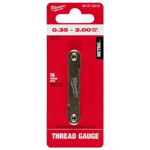 Our Milwaukee metric thread pitch gauge is designed for easy and accurate thread size measuring. The pitch gauge offers a wide range of sizes within a compact, foldable leaf design for portability. The gauge is designed with stamped size markings for clear identification of threads measuring 0.35 to 3 mm. The thread gauge can be used to measure threads on screws, bolts, pipes, tapped holes and more.