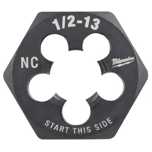 Our Milwaukee 1 in Hex Threading Dies are precision-machined for creating or repairing clean, accurate (external) threads. The hex dies feature long-lasting laser-etched sizing for the clearest markings and include a protective black oxide coating for corrosion resistance. The 1 in Hex shape is compatible with the Milwaukee Hex-LOK two-in-one Threading Handle, as well as all standard 1 in hex die stocks. Engineered for durability, our Milwaukee 1 in hex dies are designed for cutting threads in the most common metal applications including brass, aluminum and mild steel.