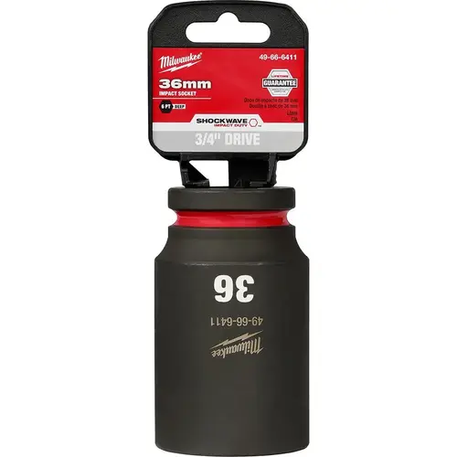 Our SHOCKWAVE Impact Duty 3/4 in drive six-point sockets feature the boldest, longest-lasting markings and extreme impact durability in high-torque applications. The stamped and ink filled size markings enable you to select the right socket every time throughout the life of the socket. We engineered these six-point standard sockets with high-strength forged steel for optimized performance in heavy-duty applications and a non-slip hex geometry prevents fastener rounding. The dual-hole design and ring groove allow for easy socket attachment and removal. All Milwaukee SHOCKWAVE Impact Duty sockets are backed by our lifetime assured and meet ASME industry standards.