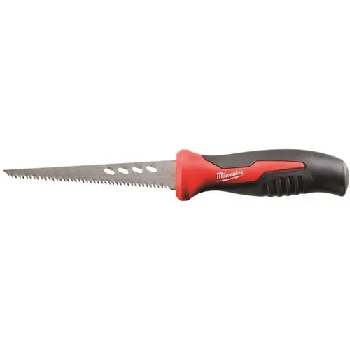 Milwaukee's 6 in. Fixed Jab Saw uniquely integrates rasping holes along the side of the blade to rapidly expand holes or smooth rough edges of sheetrock after a cut has been made. Complete with a rubber over-mold to increase comfort and reduce hand slippage, the saw also features a thick 6 in. blade for increased durability and longevity. Guaranteed with Milwaukee's limited lifetime warranty, the saw cuts plaster, drywall and other materials with ease, perfect for contractors and builders.