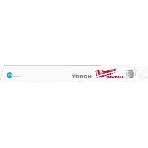The Milwaukee 48-00-4713 9 in. x 10 TPI The Torch metal-cutting blades with the Double Duty Upgrade feature a tooth form optimized for the longest life and maximum durability. Tough Neck is engineered to protect against tang breakage and delivers the strongest SAWZALL blade tang on the market. Grid Iron features a stamped honeycomb pattern throughout the body of the blade that greatly increases the rigidity of the blade, making it the stiffest metal cutting SAWZALL blade on the market. Ice Hardened blades are cryogenically treated for up to 50% longer life. These blades are ideal for making tough, straight cuts. The Milwaukee 48-00-4713 contains 5 blades.