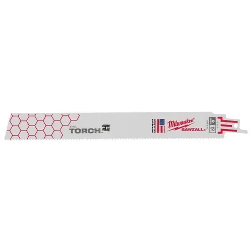 The Torch metal-cutting blades with the double duty Upgrade feature a tooth form optimized for the longest life and maximum durability. Tough Neck is engineered to protect against tang breakage and delivers the strongest SAWZALL blade tang on the market. Grid Iron features a stamped honeycomb pattern throughout the body of the blade that greatly increases the rigidity of the blade, making it the stiffest metal cutting SAWZALL blade on the market. These blades are ideal for making tough, straight cuts.