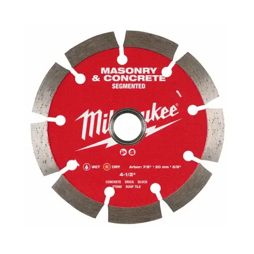 Our segmented masonry and concrete diamond blades are designed for fast cutting in masonry materials. The segmented rim design provides a fast-cutting experience. Designed with high-quality diamonds, these blades will provide up to 2X longer life in concrete. The blade's keyhole gullets promote rapid debris removal and controlled cuts. Ideal for use in concrete, brick, block, stone and roof tile. For use wet and dry.