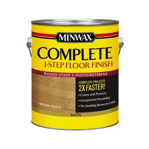 Minwax 672010000 Wood Floor Stain Complete 1-Step Floor Finish Satin Autumn Wheat Water-Based 1 gal Autumn Wheat