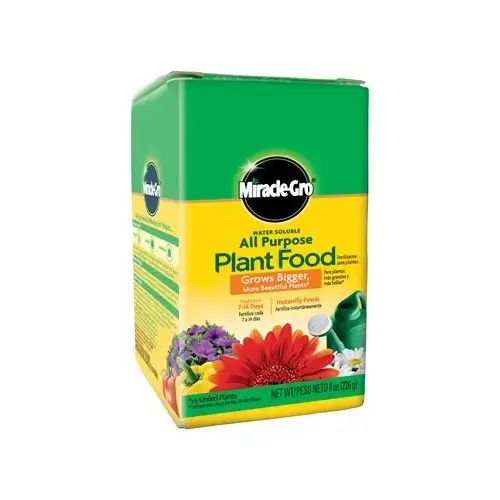 Full of essential nutrients, Miracle-Gro water soluble all-purpose plant food instantly feeds vegetables, trees, shrubs and houseplants to grow bigger and more beautiful than unfed plants. Simply feed them every 1 to 2 weeks. The formula is safe for all plants and is assured not to burn when used as directed. Get beautiful results with Miracle-Gro.