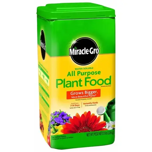 Miracle-Gro Water Soluble All-Purpose Plant Food, Net Content: 5 lb, Solid, N-P-K Ratio: 24-8-16, Ingredients: Boric Acid, Feed Duration: 1 to 2 weeks, Flammability Rating: 0, Pantone Blue