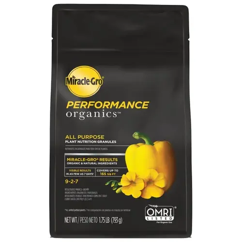 Astonishing results, every time - that has always been the Miracle-Gro mission. Miracle-Gro Performance Organics all-purpose plant nutrition granules delivers the Miracle-Gro results you expect with the ingredients you want. That means more bounty - vegetables, flowers and herbs - organically (vs unfed plants). In as few as 7 days, you'll start to see results (vs unfed potted plants). The shaker bottle makes feeding your plants easy.