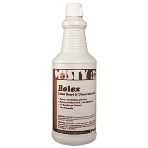 Misty Secure Hydrochloric Acid Bowl Cleaner, Mint Scent, 32oz Bottle, 12/Carton Bowl Cleaner Has A Mild Acid, Nonfuming Formula And Fresh Scent Nonfuming. Fast-acting blend of mild acid, detergents and wetting agents removes stains, mineral scale and organic matter. Keeps bowls and urinals bright, clean and fresh smelling. Odor counteractant kills offensive odors. Mfg #1038801