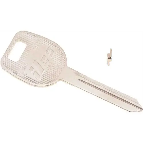 Automotive key blanks are manufactured from solid brass material. They are nickel plated to assure a long-lasting durability and to maintain a bright finish. The key blank has the manufacturer's item number on the key for easy identification.