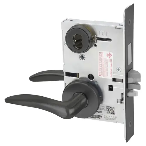 Hotel or Motel Mortise Lock, DS Lever, A Rose, Right Hand, IC 6-Pin Less Core, Black Suede Powder Coat