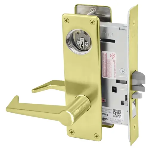 Entrance or Public Restroom Mortise Lock, ES Lever, N Escutcheon, Satin Brass