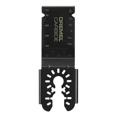 DREMEL Flush Cutting Blade, Carbide, Attachment Type: StarLock, Applicable Materials: Metal, Wood, Black, 1-1/2 in L, 1-1/4 in W, 0.05 in Thick, Suitable for: Dremel, Bosch, Makita, Milwaukee and Rockwell Oscillating Tool