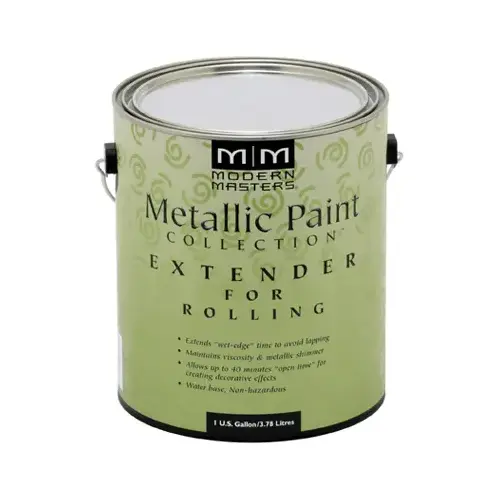 Extender for Rolling, when added to Metallic Paint Collection paints, extends the open time or 'wet-edge' of the paint. This added open time allows for 'back-rolling' as a last step to properly orient the metallic particles and eliminate seams. The Extender can also be used to transform Metallic Paint Collection Paints into translucent glazes for faux finish applications.