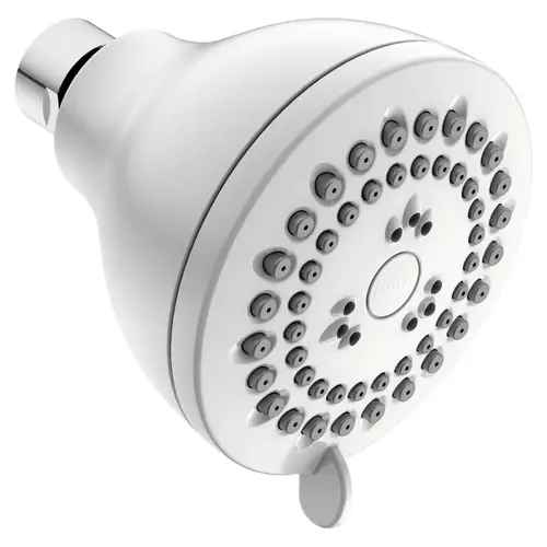 Glacier finish for a bright, clean white look, 3 in Dia spray head, four-function combination spray for more variety, meets EPA WaterSense criteria to conserve water without sacrificing performance, limited lifetime warranty. 2.5 gpm.