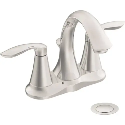 2-handle lavatory faucet with drain assembly. Center set. Lever handles. Metal drain assembly. 4" centers. 1/2" IPS connections. Valve included. 1.5 GPM (8.3 L. min) max. LEAD FREE.