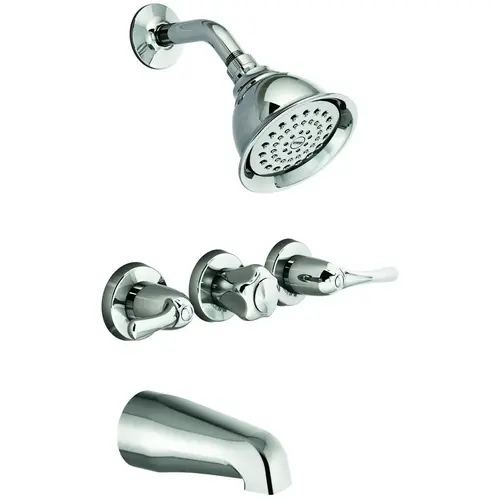 Chrome finish, lever design, 4" diameter spray head, 4-7/8" tub spout length, 1/2" IPS connection, 1224 cartridge, 2.0 gpm max., ADA compliant.