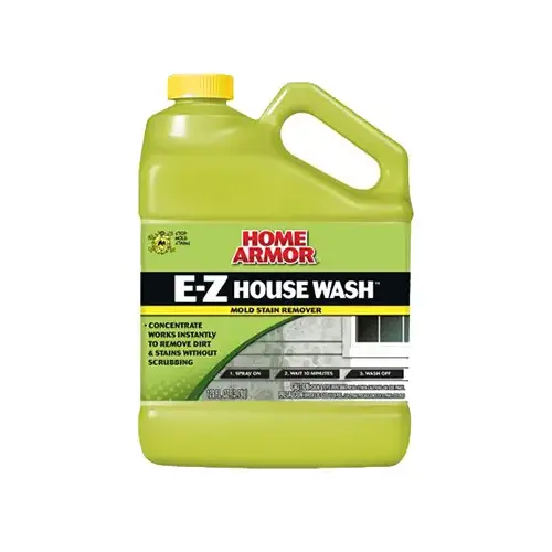 MOLD ARMOR E-Z House Wash is an easy outdoor cleaning solution that kills mold and mildew in minutes. It cleans the toughest outdoor stains with its bleach-based formula, blasting away stains caused by algae, dirt, and debris. E-Z House Wash will not harm your plants when used as directed. Great for use as a siding cleaner, vinyl, brick, stucco, aluminum, concrete, painted wood, trim, PVC, plastic, masonry, and gutters. To use as mold remover or mildew remover, spray surrounding plants with water before and after use. Start from the bottom and work upward. Wait 5-10 minutes before rinsing. To use as vinyl siding cleaner surface preparation, use formula at full strength for tough stains or dilute for typical stains and dirt. Apply with a garden sprayer, roller, or sponge. Do not use a high-power wash pressure cleaner to apply. Wait 10 minutes and then rinse with water. This is a 1-gallon mold cleaner refill for an E-Z House Wash Hose-End product. Keep out of reach of children and follow all directions.