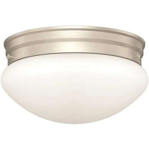 This Mushroom flushmount is uniquely designed with a contemporary, yet elegant feel. Its traditional design in white finish will provide a great design touch to any room. With the final charming of feature of mushroom shade glass, it will give a bright, yet warm illumination to your home. This timeless classic is the choice of discriminating yet value conscious homeowners who want to enrich their home.9-1/4-Inch Flushmount Ceiling Light This quaint flushmount ceiling fixture provides a warm glow to any room needing illumination. It takes two60-watt bulb (not included), which emits a golden light from beneath stunning alabaster swirl glass. The brushed nickel finished base creates shine and reflects light. The fixture's simple mushroom shape will surely blend easily into most decorating styles.