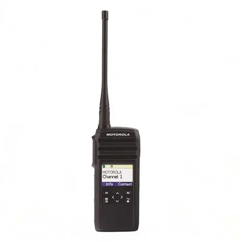 Motorola's DTR600 is reliable - enabling interference free, private communications to help your team stay focused while keeping communications private. It has a slim, rugged design. The DTR600 digital two-way radio is IP54 rated and operates at 900MHz. A full-graphic color display and intuitive navigation menu helps you quickly locate all radio features. It offers flexible communication options, including Digital One-to-One Calling and Digital One-to-Many Calling. The DTR600 also provides great coverage, long battery life and digital audio quality that is loud and clear audio wherever you are.