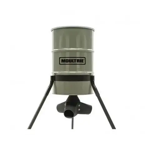 The Moultrie 55-Gallon Gravity Tripod can hold up to 400 pounds of feed and features an adjustable flow system for reliable feeding whether using corn or protein pellets. With no batteries or moving part, you simply fill, close and know your deer are eating high-quality nutrition.