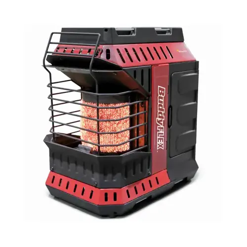 The next generation, Buddy is here! The all new 2020 next gen Buddy FLEX and FLEX accessories have been redesigned with all the features and safety you love and the added capabilities and innovation you've come to expect from Mr. Heater! the indoor safe, 11,000 Btu high-performance, Omni-directional mesh burner provides high-intensity radiant heat in a full 180 deg spread so everyone can enjoy the warmth! with integrated gas powered accessory controls and a quick-connect accessory rail system, you're safe and ready to go in any weather conditions and any event! Mr. Heater trusted - advanced safety detection systems, including - emergency low oxygen safety system, Apex 50 deg tip switch and thermal shutdown system, you and your family are safe. You asked and we listened! we updated our design to feature optimized wind barrier and pilot shield for maximum protection when using outdoors. Left and right side accessory doors feature battery compartment and gas accessory quick-connect port. Opposite door includes multi-purpose storage compartment for gloves, documents, power cords or fishing tackle box.