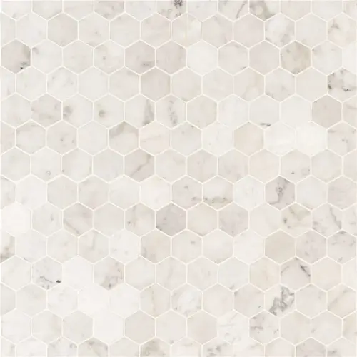 Create a unique space for your home with this Carrara White Hexagon 11.75 in. x 12 in. Honed Marble Look Floor and Wall Tile (9.8 sq. ft./Case). It can easily complement a variety of design schemes. This is a durable option for your home.