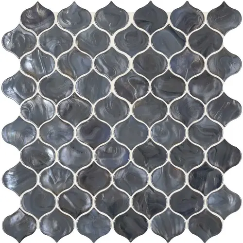 Tackle your next tile project with this MSI Blue Shimmer Arabesque Glossy Glass Patterned Look Wall Tile. This blue tile is the perfect choice for your kitchen backsplash, shower or accent wall. The arabesque-shaped tiles are mounted on a mesh backing so installation is quick and easy.