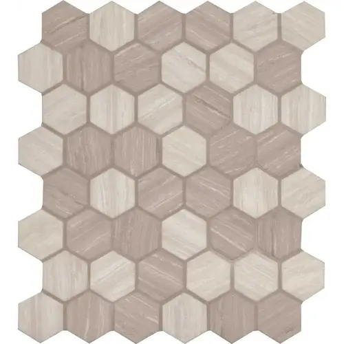 MSIs Silva Oak Recycled Glass Hexagon Mosaic Tile strikes the perfect balance between traditional and contemporary with neutral colorways of gray, beige, and cream. Durable, low-maintenance, and highly versatile, this mosaic gives residential and light commercial spaces a touch of visual intrigue. Its perfectly suited for a kitchen backsplash, but why stop there. You can also use it on countertops, accent walls, shower walls, or to give a nook distinct personality. Pair it with Silva Oak 6mm Interlocking Mosaic, or use it alone to headline your design. The choice is yours, and possibilities are endless. Tiles are mounted on mesh-backed sheets for a simplified installation that yields a professional look.