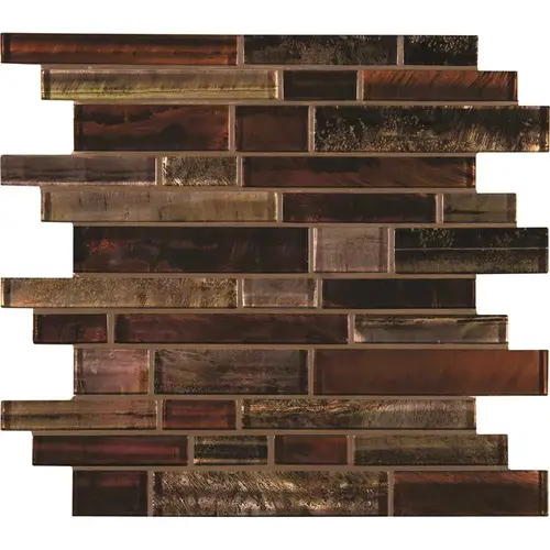 Upgrade your home with MSI's Artista Interlocking Glossy Glass Patterned Look Wall Tile. This tile features metallic brown tone glass bricks pre-mounted to a mesh backing to make installation easy. These durable tile sheets are perfect for your kitchen backsplash, bathroom, shower or fireplace project.
