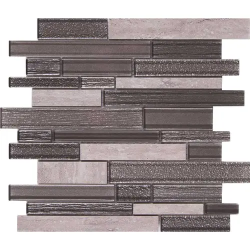 Accentuate your home with the elegance of this MSI Smoky Alps Interlocking 8mm Wall Tile. It features rectangular porcelain and glass in grays, silvers and charcoals, adding visual interest to any interior space. This stylish tile is the perfect choice for updating your kitchen backsplash, bath wall, countertop surface or feature wall. Durable and with mesh backing for easy installation, it is designed for both residential and commercial use. Inspect all tiles before installation. Natural stone products inherently lack uniformity and are subject to variation in color, shade, finish, etc. It is recommended to blend tiles from different boxes when installing. Natural stones may be characterized by dry seams and pits that are often filled. The filling can work its way out and it may be necessary to refill these voids as part of a normal maintenance procedure. All natural stone products should be sealed with a penetrating sealer. After installation, vendor disclaims any liabilities.