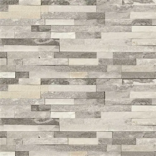 Alaska Gray Ledger Panel 6 in. x 24 in. Wall Tile is a Natural Stone Marble with a blend of contemporary gray tones. The tile features random strips of stacked stone glued together for ease of installation. Each piece has an S-shaped end that helps interlock the pieces and enhance the random look. This tile can easily be laid in a pattern or single layout and is suitable for residential and commercial installations. Note: Inspect all tiles before installation. Natural stone products inherently lack uniformity and are subject to variation in color, shade, finish, etc. It is recommended to blend tiles from different boxes when installing. Natural stones may be characterized by dry seams and pits that are often filled. The filling can work its way out and it may be necessary to refill these voids as part of a normal maintenance procedure. All natural stone products should be sealed with a penetrating sealer.